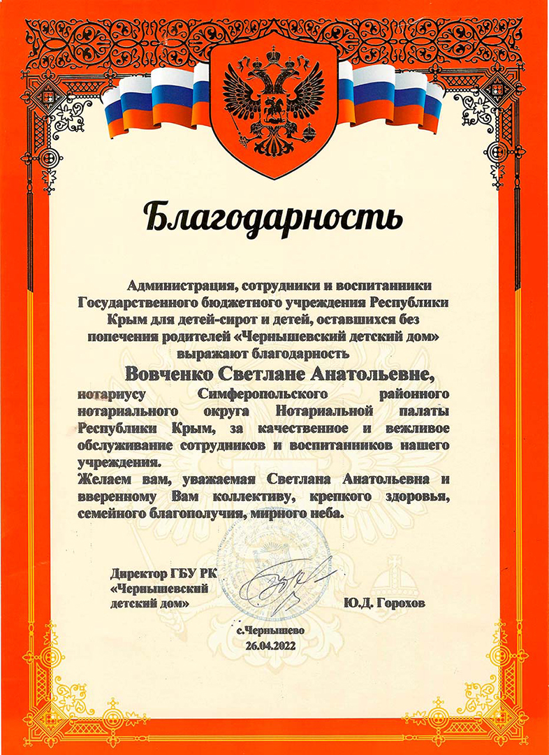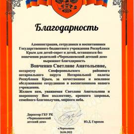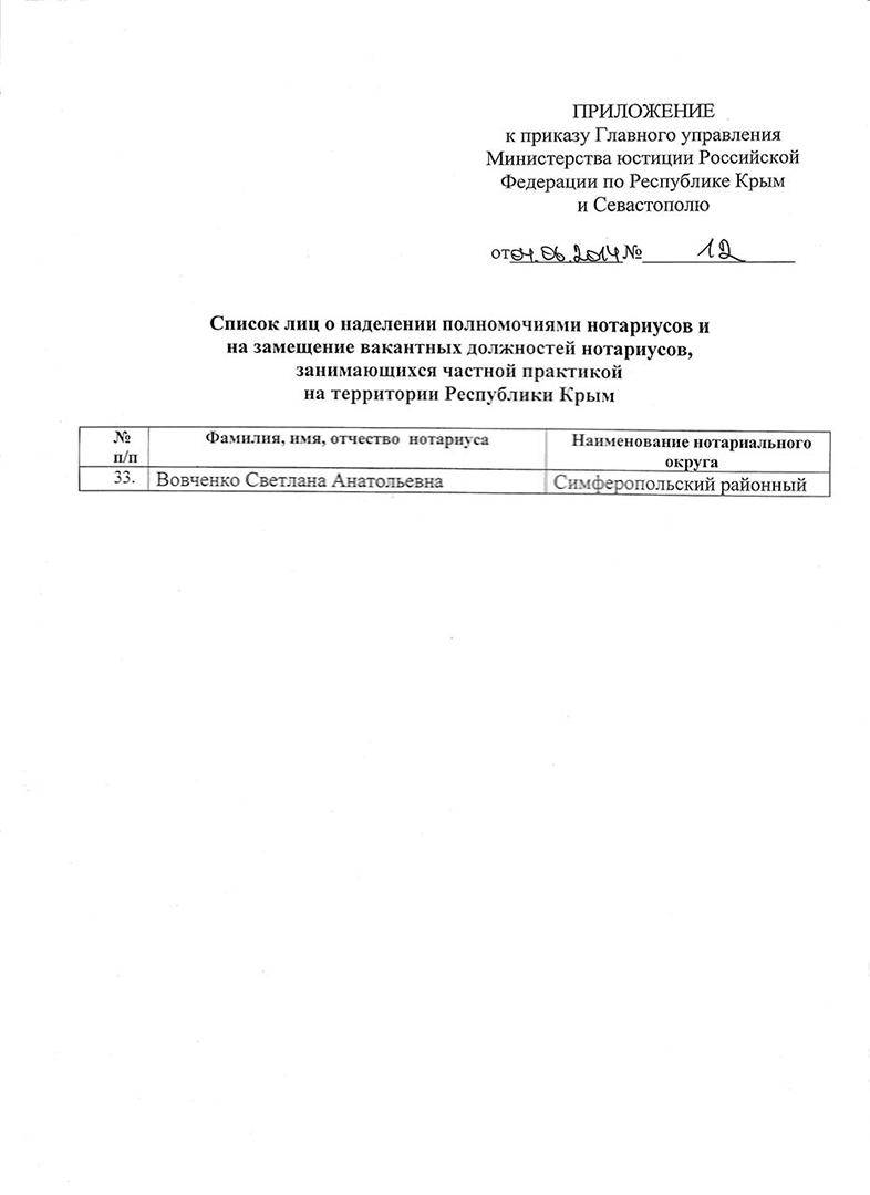 Вовченко Светлана Анатольевна, нотариус, осуществляющий нотариальную деятельность в Симферопольском районном нотариальном округе Республики Крым.