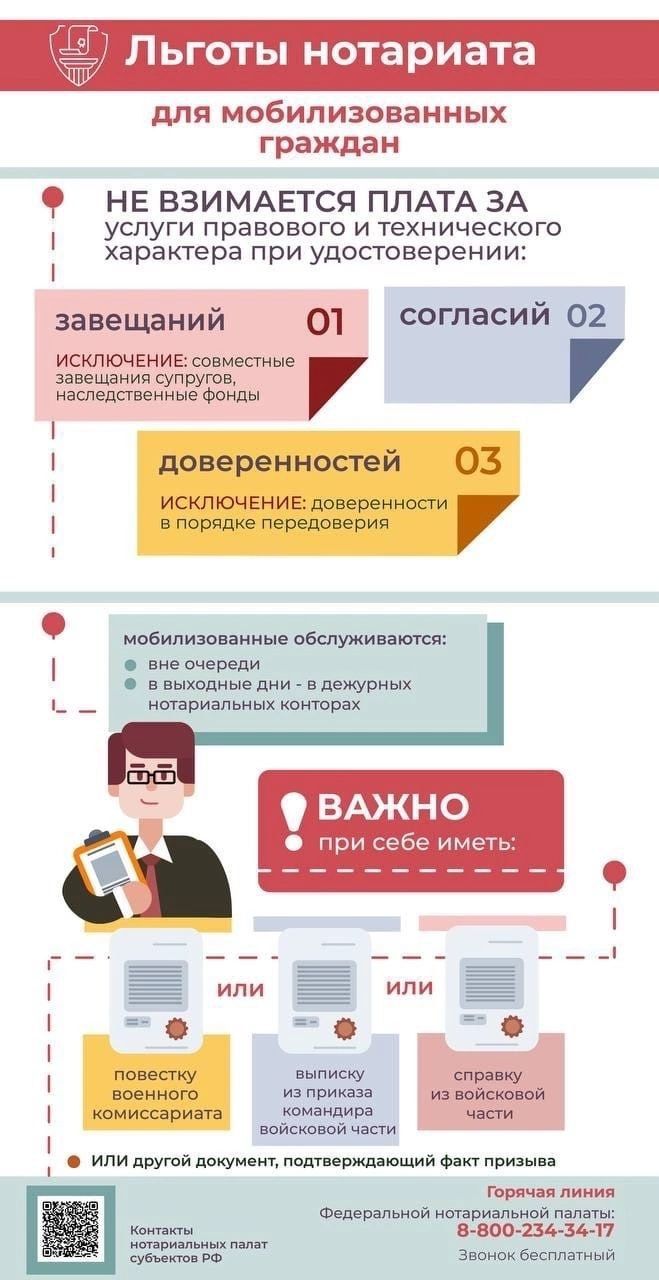 Кроме того, при наличии документа военного комиссариата, подтверждающего факт призыва, мобилизованные граждане могут оформить ряд нотариальных документов на льготных условиях: